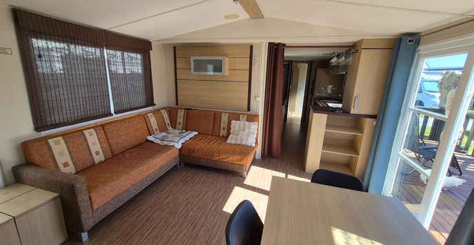 Mobil home confortable avec bel espace de vie.